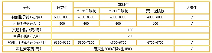 注:(1)本科生要求英语通过四级,425分(含)以上;(2)租房补贴只在见习期享受。